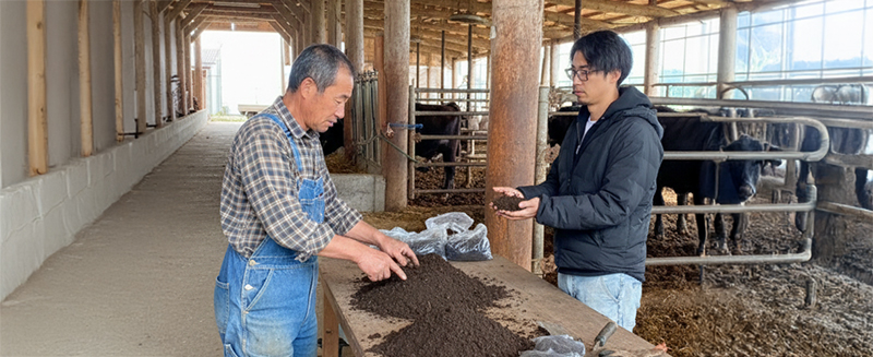 耕畜連携とは、農作物を栽培する「耕種農業者」と家畜を飼育する「畜産農業者」が協力し、 資源を循環させる取り組みです。畜産業で生じる家畜ふん尿を堆肥としてを利用することで質の 高い国産の肥料を使うことができます。このように、資源を互いにうまく提供および循環していく ことで、持続可能な地域の形成につながります。