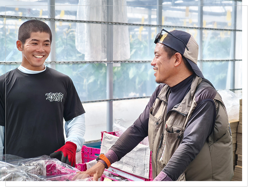 農業の最前線で活躍する社員たちの生の声をお届けします。 未経験からのキャリアチェンジ、起業を目指して修行にくる人など、 さまざまな夢をもつ向上心の高い人たちが集まっています。